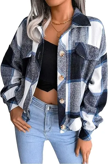 場景應用:時尚休閒的拼色短版法蘭絨格紋襯衫外套,適用街頭穿搭、日常穿著、購物、工作、旅行、夜店、派對、戶外活動及約會等場合。